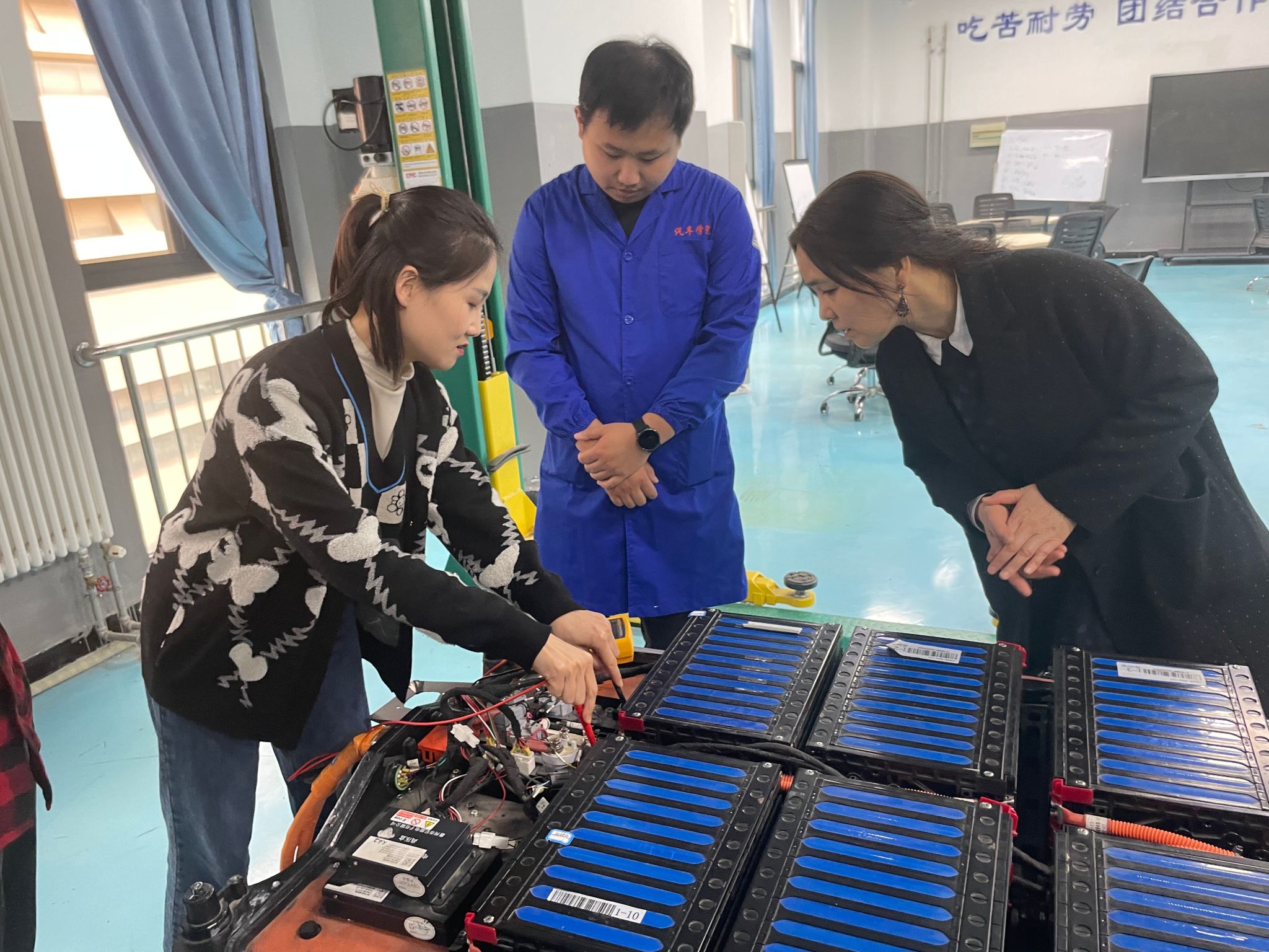 针对新能源汽车实训室存在的动力电池高压电,刘纯学经理强调,上课作业时必须做好安全防护,同时在由高压电的设备上设置警示牌。