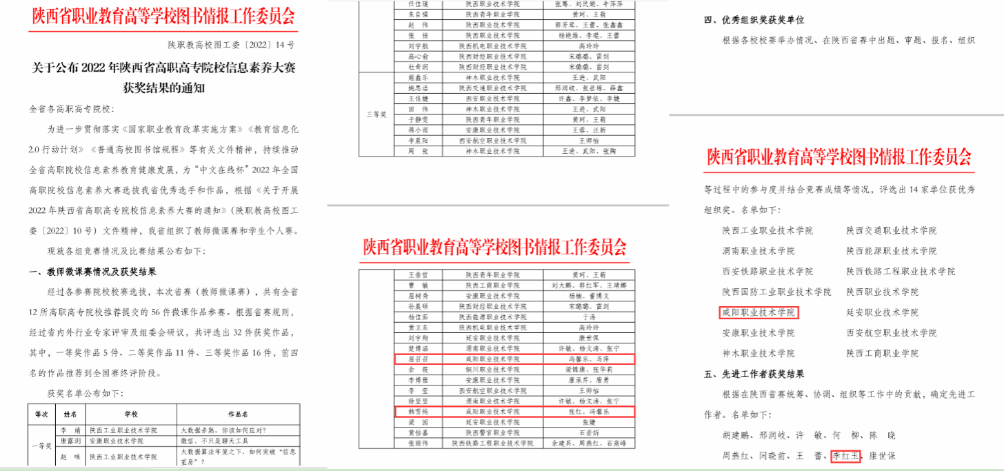近日,陕西省职业教育高等公司图书情报工作委员会发布了《关于公布2022年陕西省高职高专院校信息素养大赛获奖结果的通知》(陕职教高校图工委〔2022〕14号),gg999策略手机白菜2021级新能源汽车专业屈召召荣获员工组三等奖。