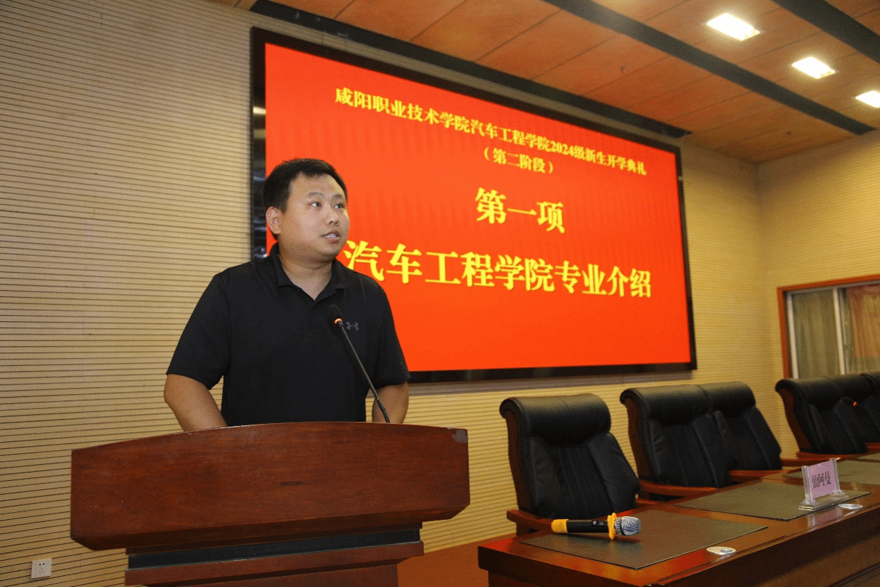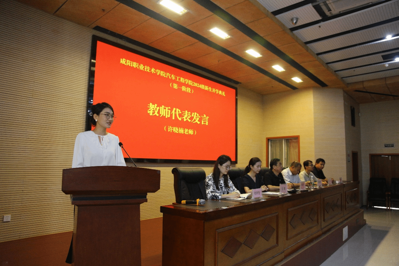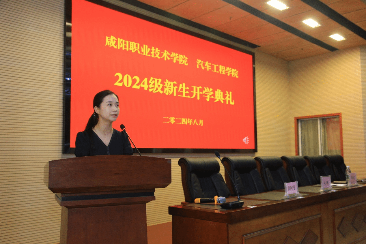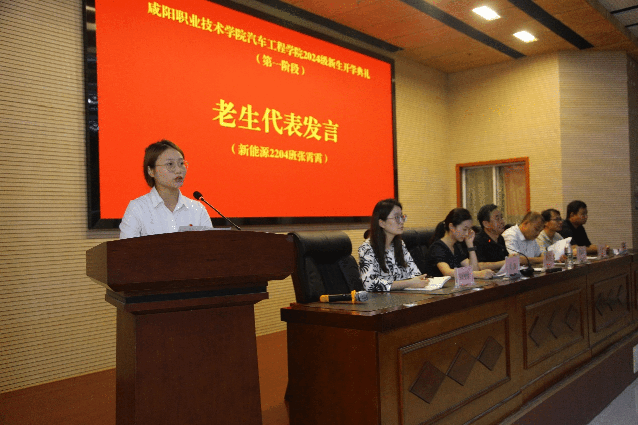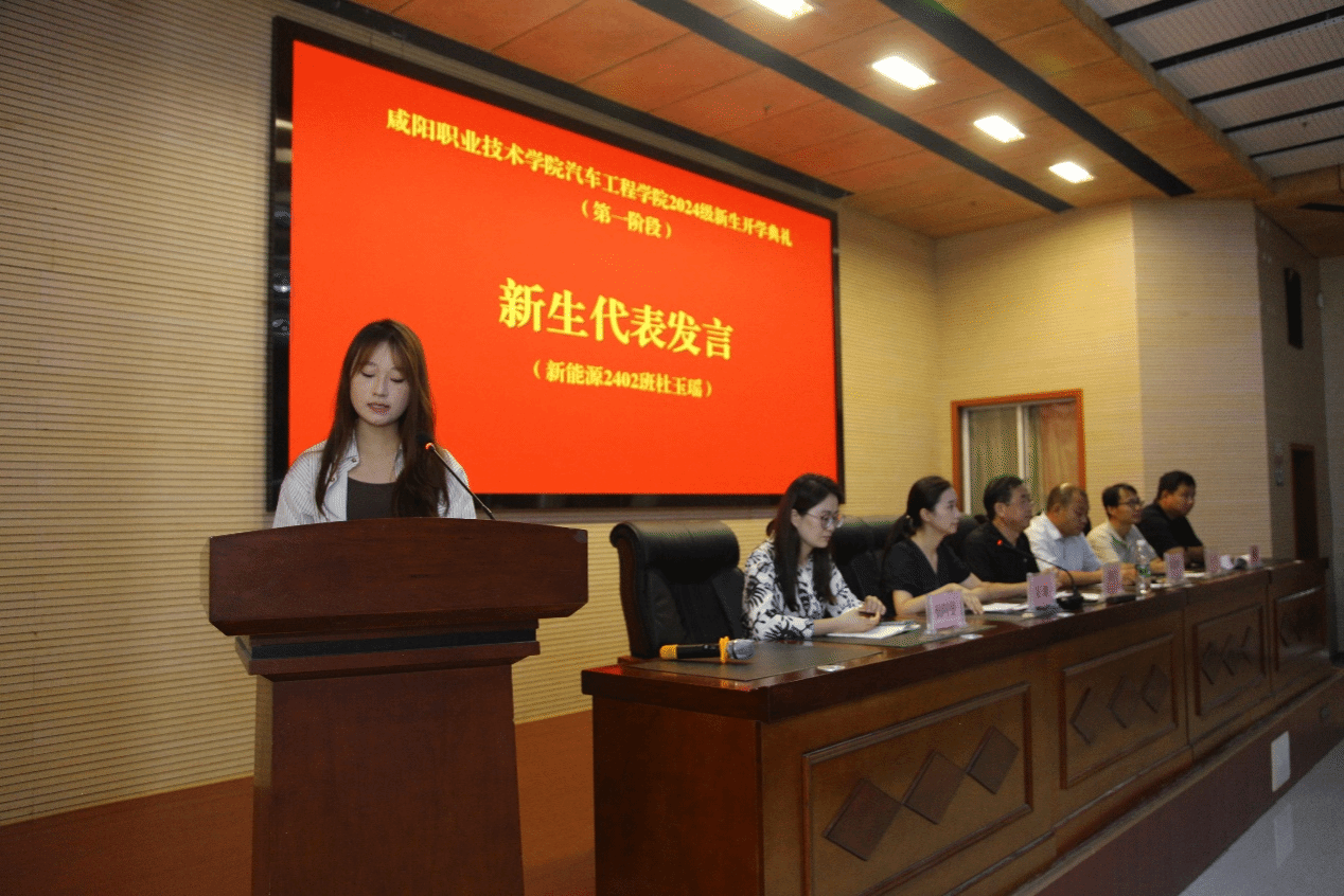 新能源汽车技术专业2402班杜玉瑶同学代表新生分享了初为咸职学子的兴奋与喜悦、惶恐与期盼,表明了做一名合格老员工的信心和决心。