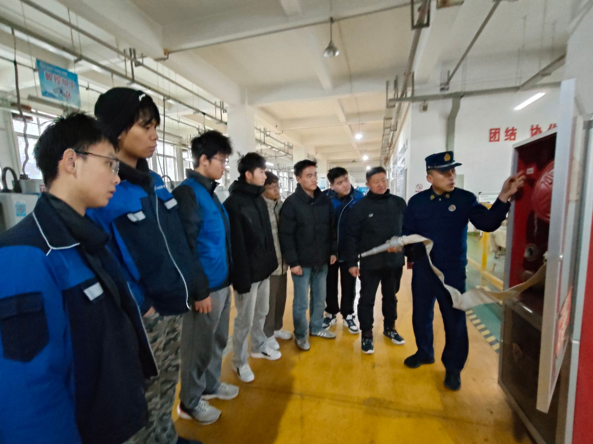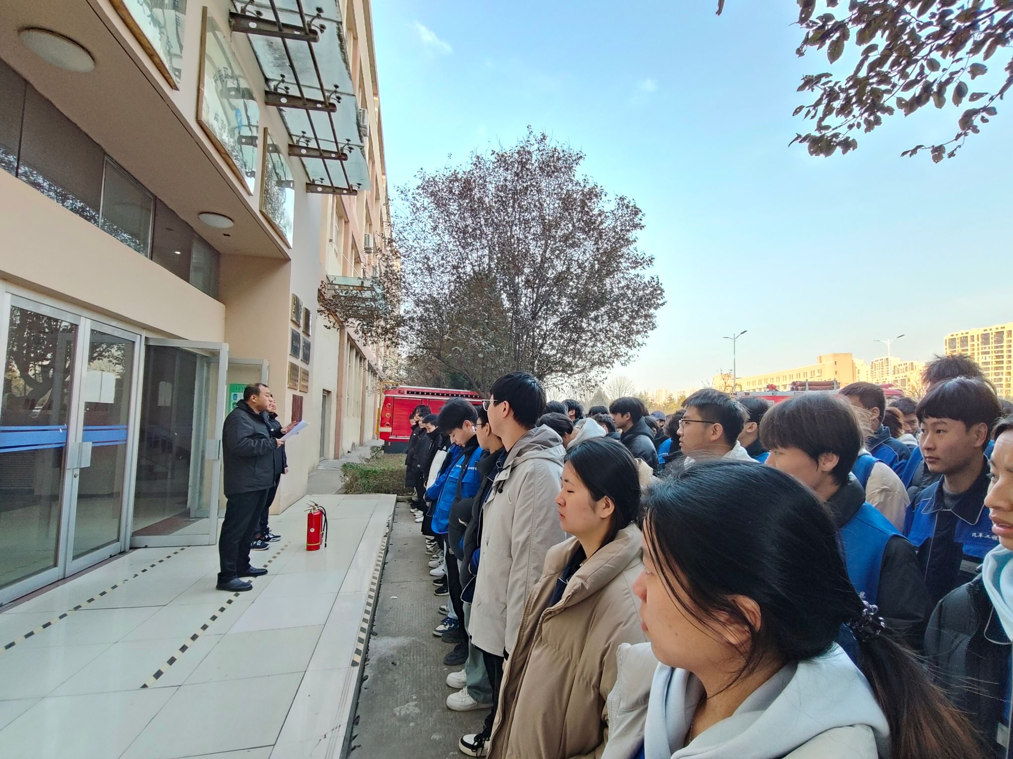 公司党总支书记张忠辉强调,全体师生要从生命至上角度充分认识防火防灾防意外的重要性,将各种可能发生的危险隐患消除在萌芽状态,防救结合、预防为主,全面提升安全防灾意识和应急救护能力。教学楼④既有汽油柴油、润滑机油,又有新能源专业需要的电源、电池,为火灾易发区域,更要在防火防震上心用心,确保广大师生人身财物和公司财产安全。