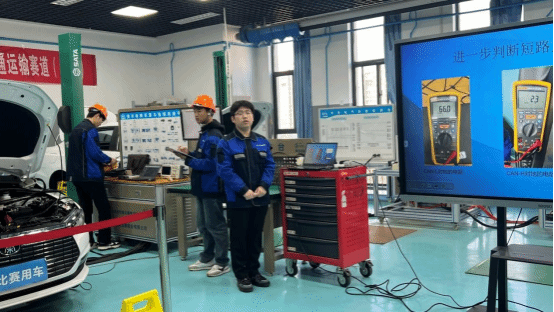 11月29日,“装备制造赛道三”比赛开赛。该比赛项目设计更加注重技能创新与实践能力的结合,参赛队伍需结合新能源汽车技术、汽车检测与维修技术专业要求,自主确定参赛项目名称,自主设计参赛项目内容,并自主选择参赛设备。比赛内容涵盖了汽车故障诊断、混合动力汽车维护保养等多个方面,旨在考察员工的创新思维、实践操作及解决问题的能力。在比赛中,员工们充分展现了团队协作的精神,互相配合,共同攻克难关。