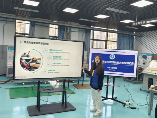 11月28日,“交通运输赛道汽车”赛项率先拉开帷幕。比赛围绕新能源汽车技术、汽车检测与维修等核心领域展开,紧密贴合汽车制造类行业的特点及一线岗位实际需求。参赛队伍自行选择参赛题目,包括新能源汽车故障诊断与排除、智能驾驶系统调试、车辆性能检测与优化等在内的多个项目。员工自主设计故障,进行诊断并排除故障,同时制作PPT进行现场讲解,全面展示创新思维能力、现场表达能力与团队协作能力。