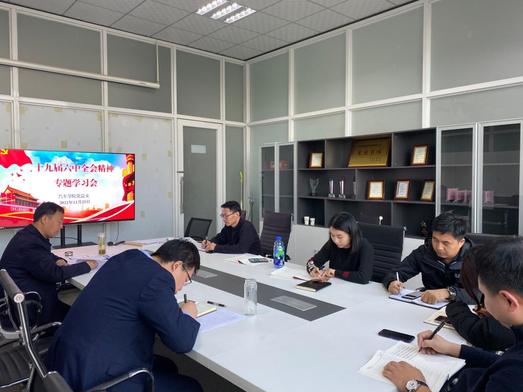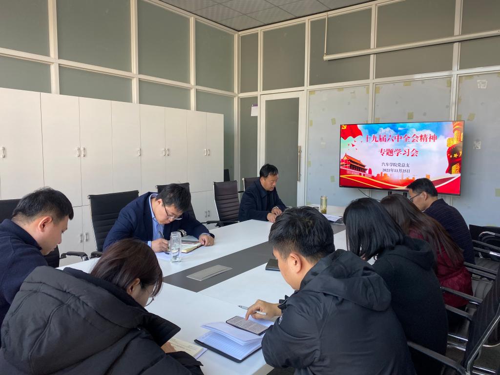 11月25日下午,汽车公司党总支在汽车实训楼304会议室召开学习贯彻党的十九届六中全会精神专题学习会。会议由汽车公司党总支书记张兆斌主持,汽车公司全体党员及管理干部参加。