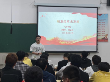 为深入学习贯彻习近平总书记在党史学习教育动员大会上的重要讲话精神,扎实推进公司党史学习教育,加强公司团干部队伍建设,2021年4月19日晚7点30分,汽车公司团总支在教学楼119教室开展了团干部讲党史活动,活动主题为“锐意改革求发展”,主讲人为团总支副书记韩金良,参与本次活动的员工为汽修1901班和汽营1901班全体员工,共53人。