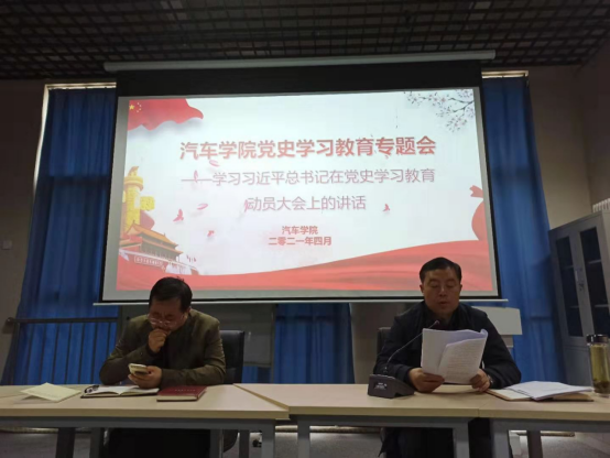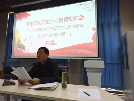 4月7日下午,汽车公司党总支组织全体教职工,在汽车实训楼312举行了党史学习教育专题学习会。作为汽车公司党史学习教育系列活动之一,此次专题会主题是学习习近平总书记在党史学习教育动员大会上的讲话。张兆斌书记原原本本领学了讲话全文,同时特别强调,总书记的讲话高屋建瓴,视野宏大,思想深邃,深刻阐述了开展党史学习教育的重大意义,深刻阐明了党史学习教育的重点和工作要求,对党史学习教育进行了全面动员和部署,为我们开展好党史学习教育指明了方向,提供了根本遵循。