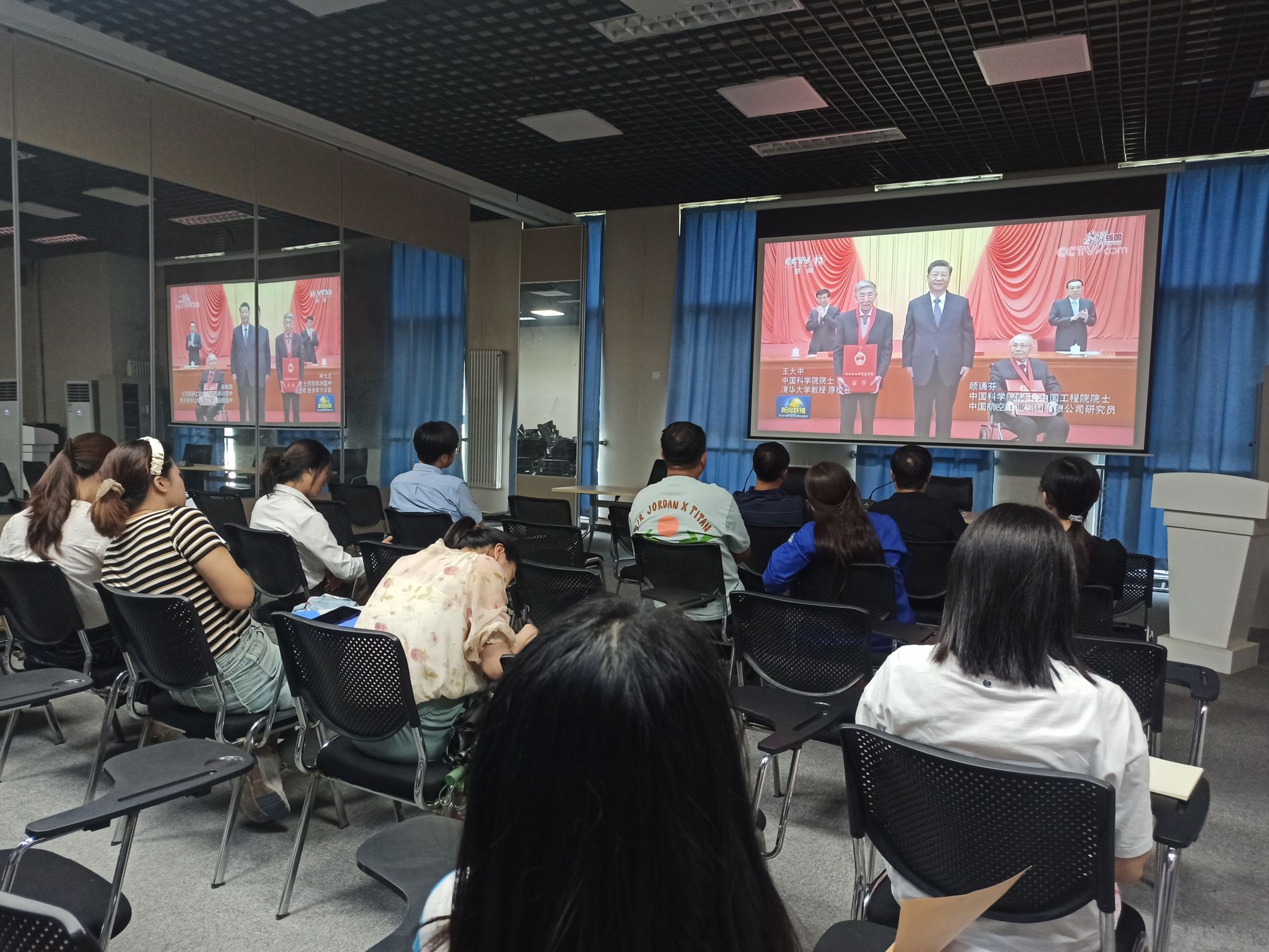 24位老师目不转睛、用心观看。习近平总书记的篇篇讲话、声声问候灌注脑海,慈祥笑容、亲切握手映入眼帘,处处走访、封封回信展现面前,同时回顾起十八大以来我国教育事业特别是职业教育的巨大发展成就,在座的老师们身为高职院校教师的自豪感油然而生。