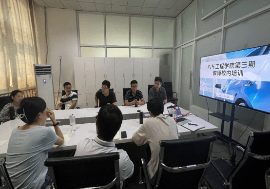 2023年新进教师许晓楠从参加校内培训、参加国培项目两个板块进行了汇报交流,系统回顾了本次校内培训的全部项目及培训前的惴惴不安、刚开始的缩手缩脚、集训时的不甘人后、背过他人的反复训练和考核时的全力以赴,回顾了参加国培时的倾心聆听、不耻下问、探讨交流以及研学环节中的信息汇集、企业参观、经验交流等,分享了新能源、智能网联汽车行业的发展状况和人才需求趋势。