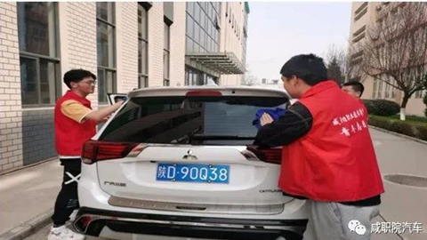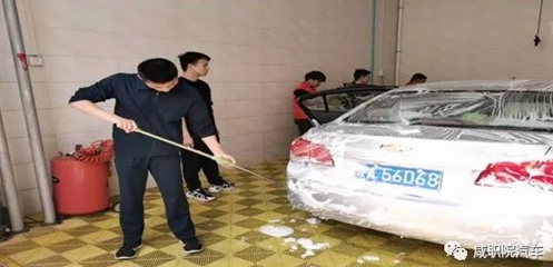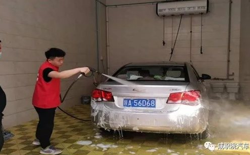 活动开始前,云争飞主任对青年志愿者进行了分工,同时指出在活动中要注意安全。任务明确后,同学们分组进入各自岗位。洗车房里面的同学用高压水枪冲洗汽车表面污渍,用泡沫枪全方位打泡沫,接着用汽车拖把开始给车辆搓起了澡,最后冲掉车上的泡沫;洗车房外的同学们对车辆内外全面擦拭,整个过程大家充满干劲、配合默契。