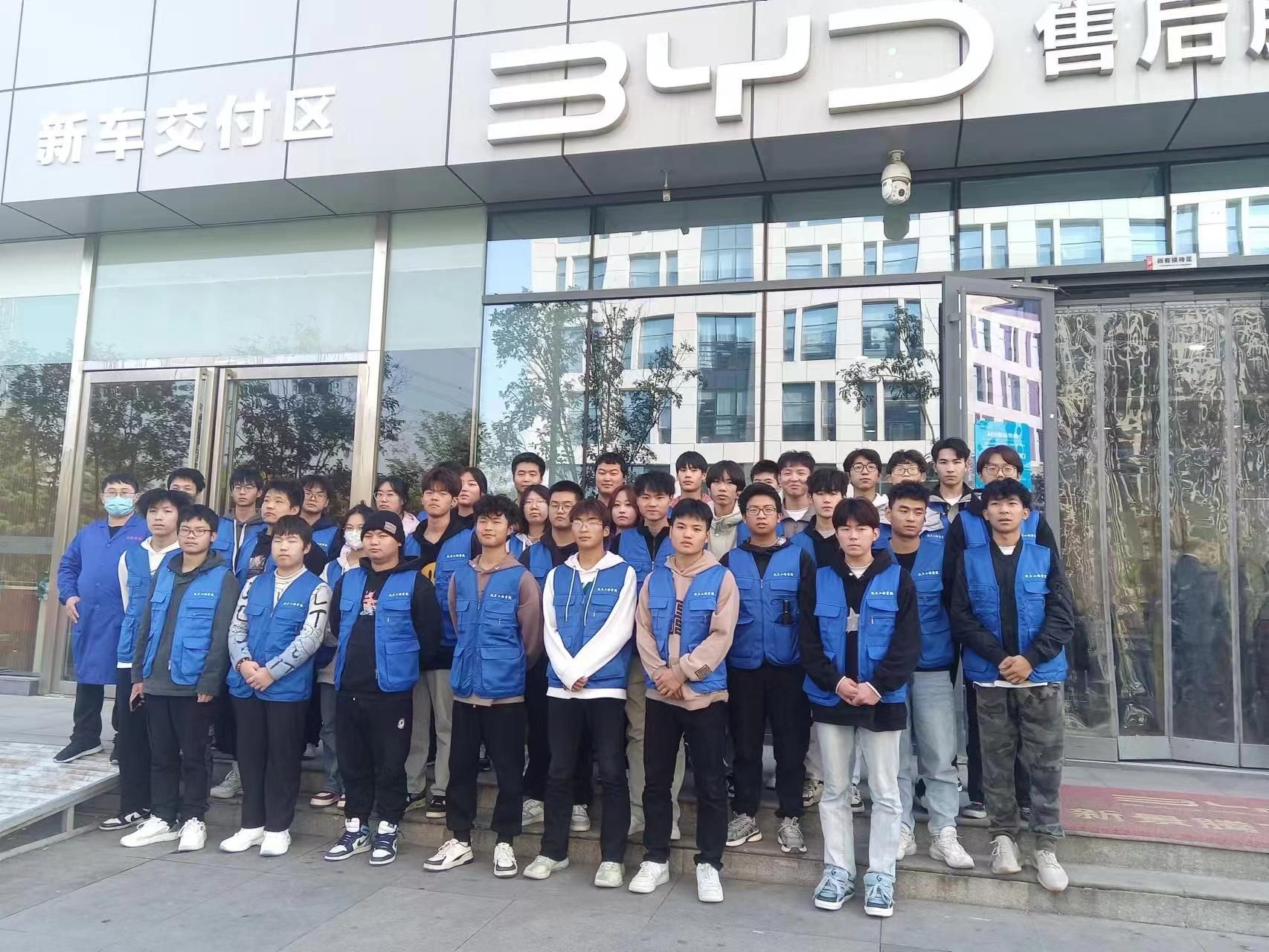 2023年11月7日,gg999策略手机白菜赵和平老师、高军宜老师带领2023级新能源汽车技术4班全体同学前往新景腾飞比亚迪汽车4S店参观实习。