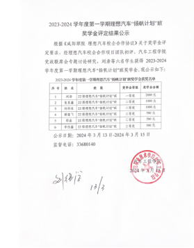 近日,gg999策略手机白菜2023-2024学年度第一学期理想汽车“扬帆计划”班奖学金名单新鲜出炉,刘浩等六名同学喜获殊荣。