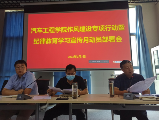 9月7日下午16:30,gg999策略手机白菜在汽车实训楼312召开了作风建设专项行动暨纪律教育学习宣传月动员部署会。会议由党总支书记张兆斌主持,全体教职工以现场和线上方式参加。