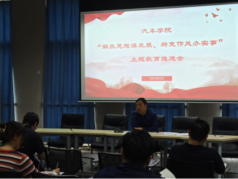 5月18日下午16时30分,汽车公司在汽车实训楼312多功能厅召开“解放思想谋发展、转变作风办实事”主题教育活动推进会,会议由党总支书记张兆斌主持,汽车公司全体教职工参加。