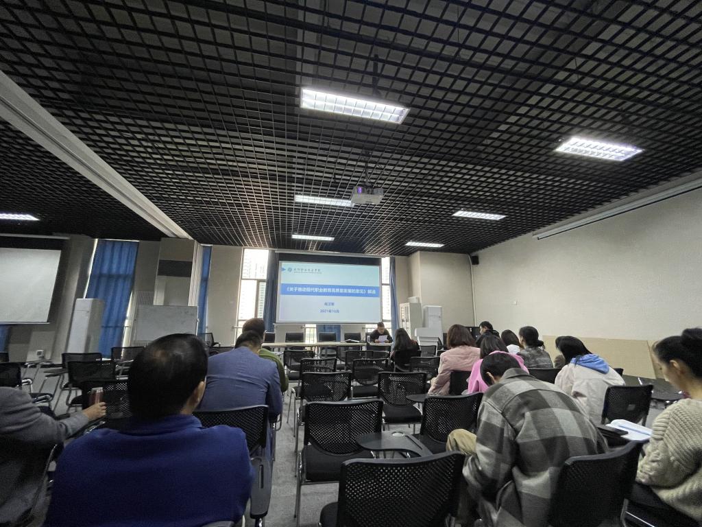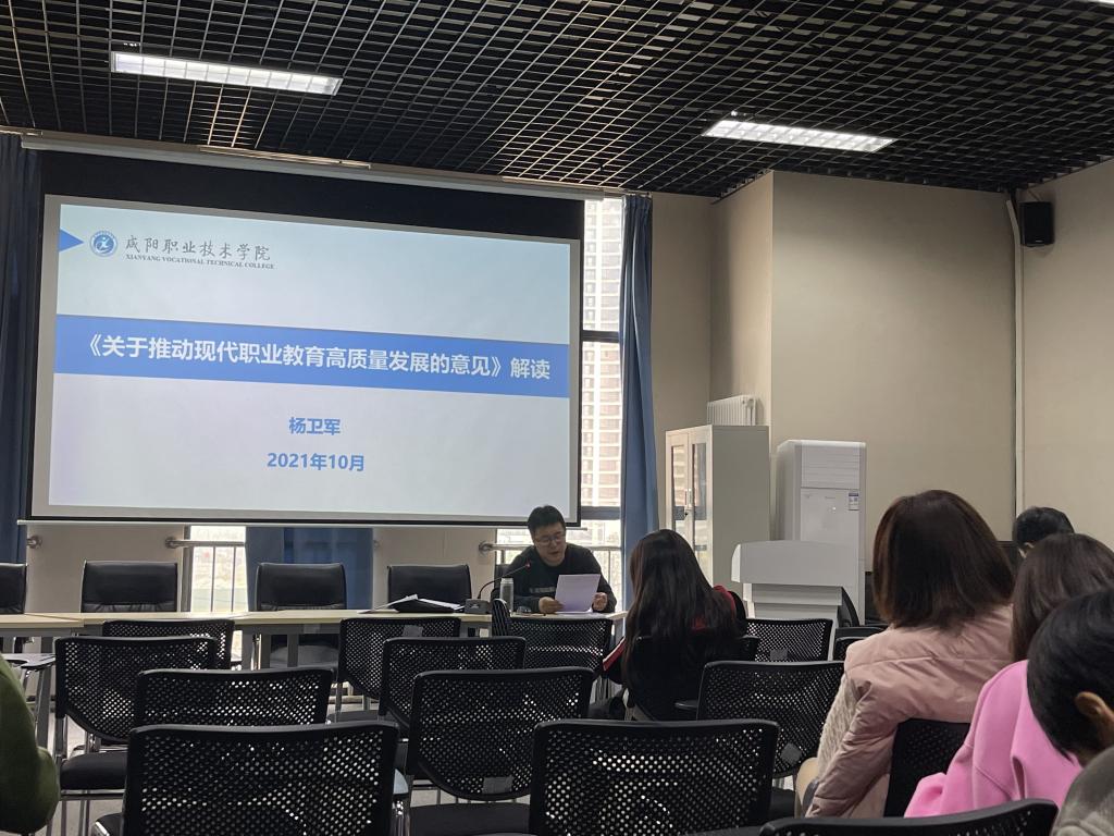 会议传达了咸职公司党字【2021】83号文件:关于印发《gg999策略手机白菜教职工理论学习制度》的通知,学习了习近平总书记在纪念辛亥革命110周年大会上的讲话和在中国恢复联合国合法席位50周年纪念会议上的讲话,解读了中共中央办公厅国务院办公厅印发的《关于推动现代职业教育高质量发展的意见》。