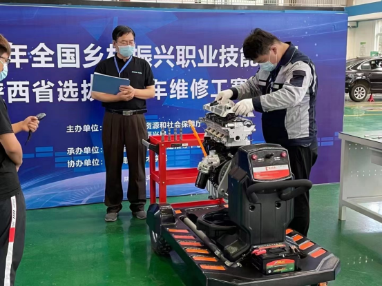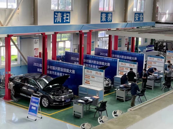 本次全国乡村振兴职业技能大赛陕西省选拔赛汽车维修工赛项分为发动机机械和汽车故障诊断与排除两个赛项,教师与员工同场竞技,比赛内容包括发动机机械部分拆装、发动机机械部件检测、汽车发动机电控系统诊断与排除、汽车安全舒适系统诊断与排除四个组成部分。
