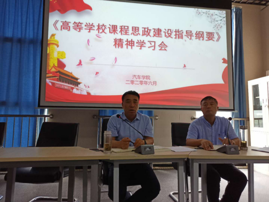 张兆斌在学习会上要求,全体教师要认真学习《高等公司课程思政建设指导纲要》,结合公司专业教学实际,撰写一篇结合自己专业教学如何学习好、落实好《指导纲要》的心得体会;汽车公司必须要全面开展“三全育人”,用科学创新的课程思政落实好立德树人教育使命,强化员工理想信念教育,为培养社会急需的汽车类高水平技术技能人才不懈奋斗!