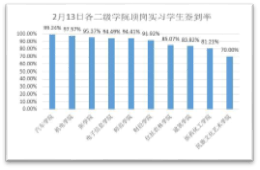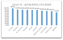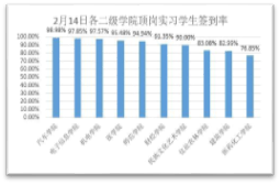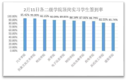 在每位实习指导老师和员工们不懈的努力和坚持之下,汽车公司疫情防控切期间做到了顶岗实习员工除当兵员工外99%的签到率,签到率连续一周保持全职院第一。