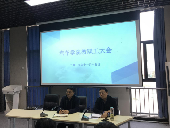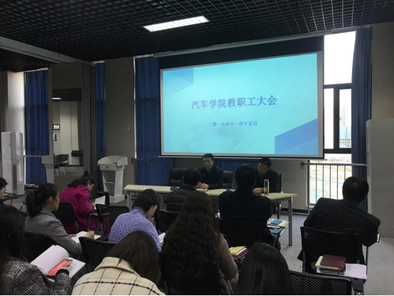 期中教学检查刚刚结束,为发挥各位教职工的正能量,促进汽车公司公司产品工作又好又快发展,11月15日下午4:00,汽车公司汽车楼312室召开全体教职工大会。会议对上半学期工作完成情况做了总结,重点安排部署了近期各部门的工作,全体教职工参加了会议。