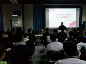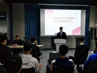 2019年11月6日,汽车公司员工干部换届大会在汽车实训楼召开。汽车公司经理罗联合、党总支书记张兆斌、学发办主任云争飞、综合办主任王平、教学办主任何文峰等领导、全体辅导员老师、团总支和员工会全体员工干部、2018级和2019级员工代表参加本次动员大会。本次活动由学发办副主任王魏主持。
