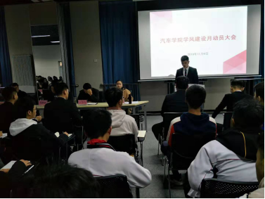 为了构建良好学风、院风,大力推动学风建设月各项工作,汽车公司于2019年11月6日在汽车楼三楼会议室召开了“学风建设月动员大会”。汽车公司经理罗联合、党总支书记张兆斌、学发办主任云争飞、综合办主任王平、教学办主任何文峰等领导、全体辅导员老师、团总支和员工会全体员工干部、2018级和2019级员工代表参加本次动员大会。本次活动由学发办副主任王魏主持。