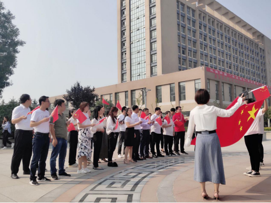 2019年9月26日上午10:00,在汽车公司党总支的大力号召下,公司全体教职员工在艺术楼前小广场上列队集中。白色上衣黑色长裤,手持小国旗的我们显得如此精神抖擞,大家面对红红的国旗,齐声高唱《我和我的祖国》,用动情的歌唱来表达心中对伟大祖国即将到来的七十华诞的满腔激情。大家歌声嘹亮、声情并荗,响亮的声音回绕在广场四周,让过往的师生们无不回头观望,澎湃的激情感染着校园:天那样蓝、风这么柔、花如此艳、心这样热!