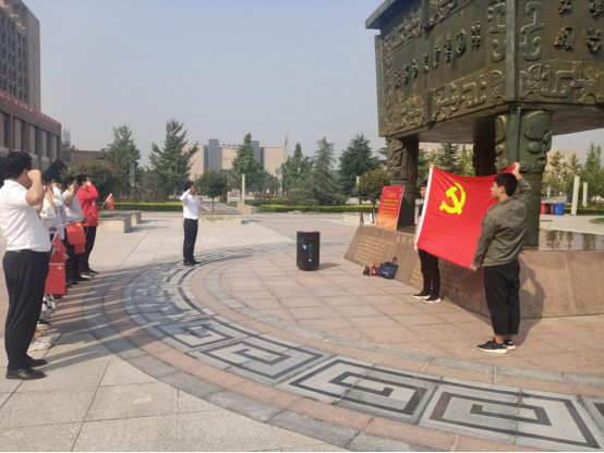 随后,在党总支书记张兆斌同志带领下,我们全体党员胸配党徽、面对党旗,整齐地举起右拳,庄严地再次宣读入党誓言。铿锵的语句、严肃的表情,让我们所有党员再次重温了曾经地凝重与激动。