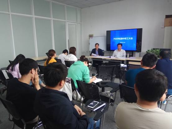4月25日下午,汽车公司在实训楼举办期中全体教职工大会,汽车公司经理赖展翅主持会议,汽车公司党总支书记刘燕京出席会议,汽车公司全体教职工参加。