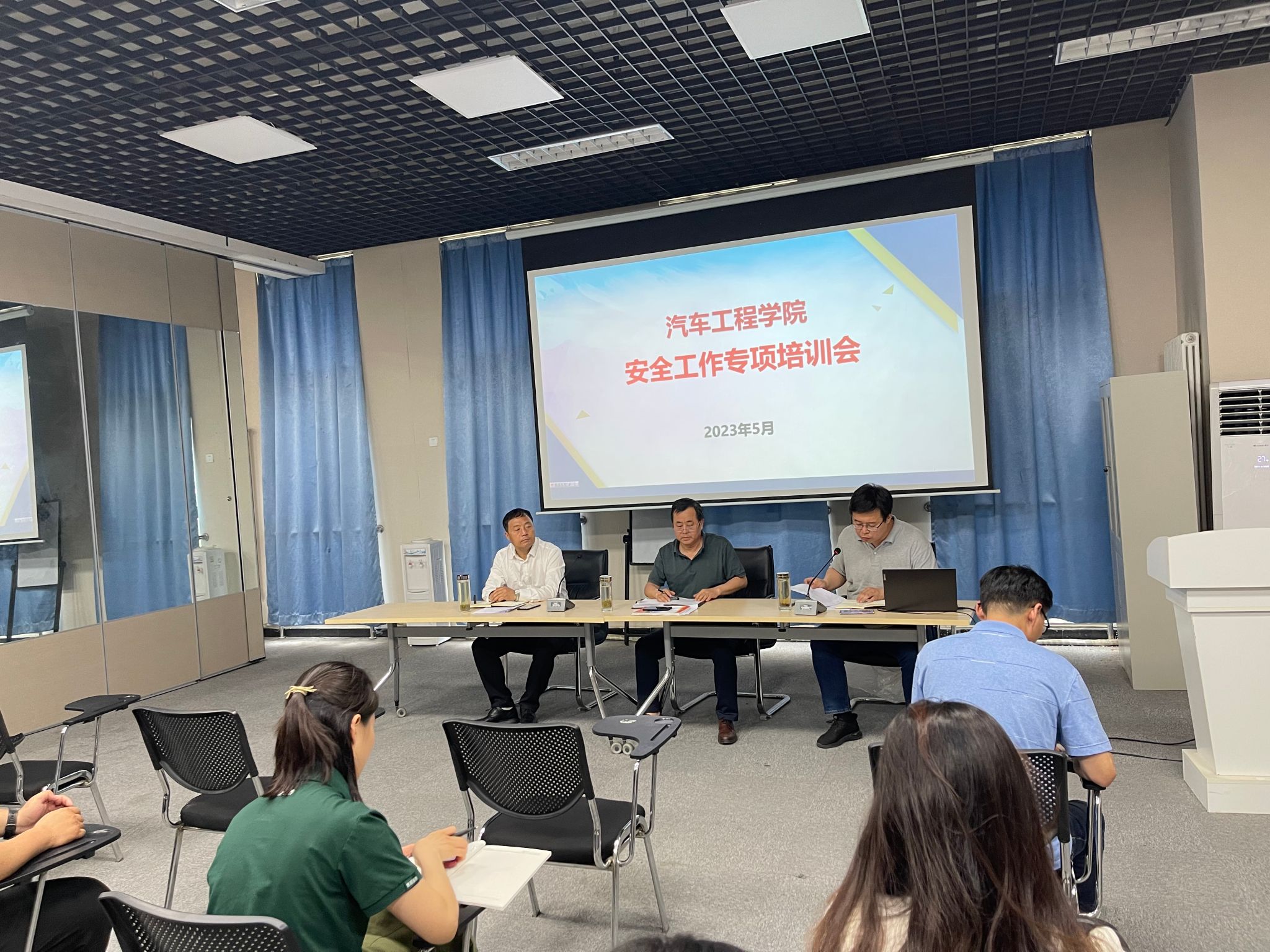 会议还进行了《实训室双柱举升机安全操作规程》、《新能源汽车实训室触电急救措施》两个专项培训。