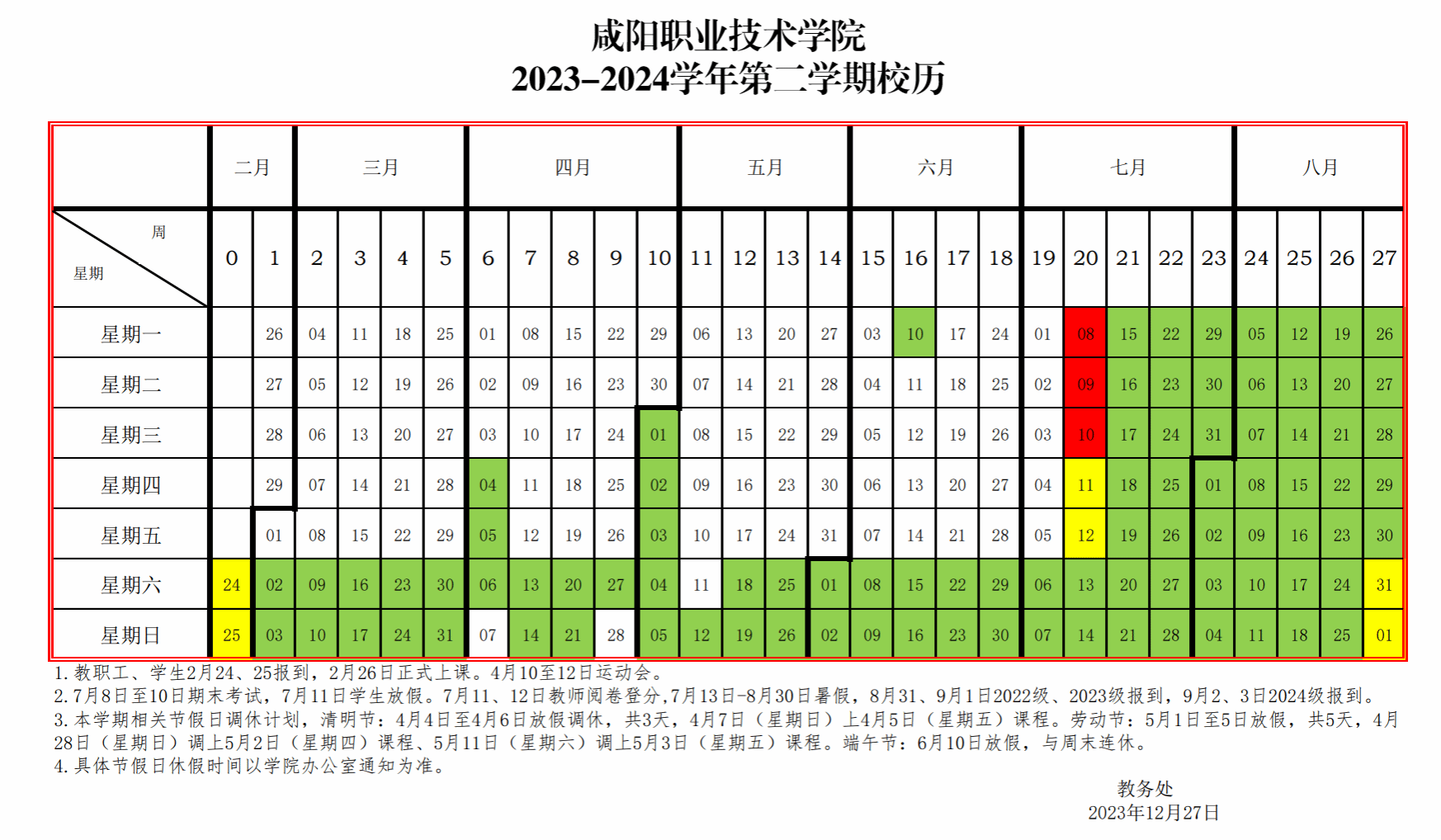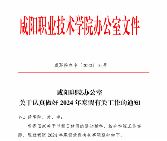 全体教师2024年1月15日(农历腊月初五,星期一)起假,全体管理干部1月22日(农历腊月十二,星期一)起假;2月24日(农历正月十五日,星期六)全体教职工报到上班。