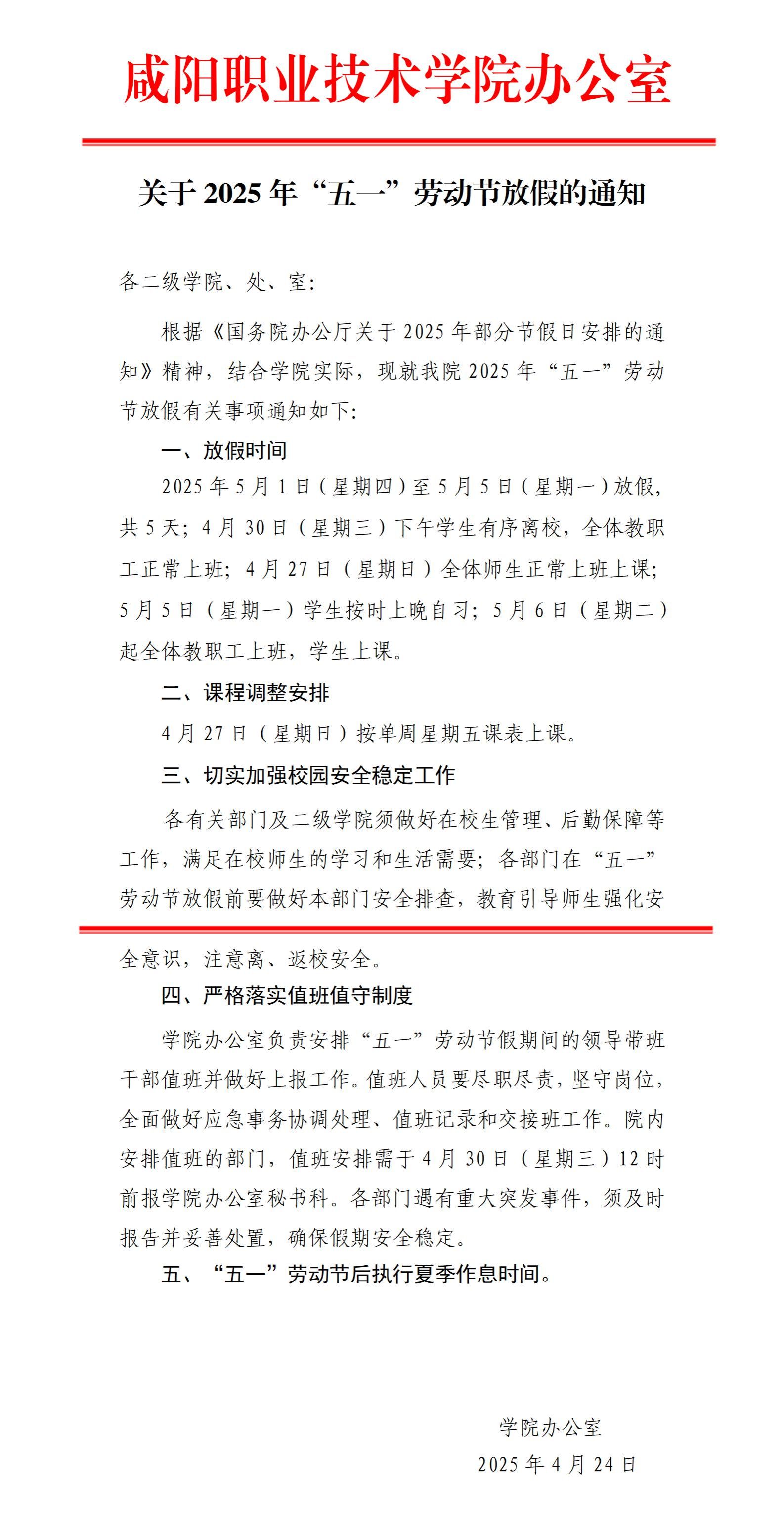 关于2025年“五一”劳动节放假的通知